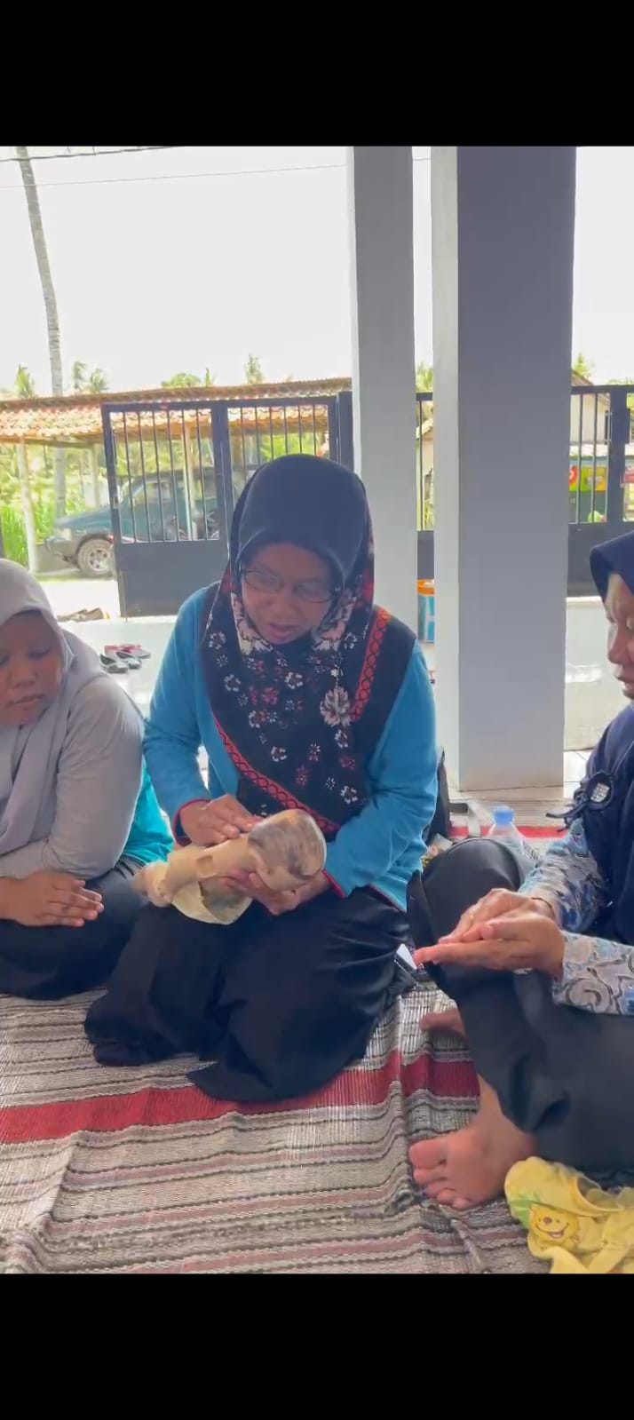 Setelah penyampaian teori, kegiatan dilanjutkan dengan demonstrasi pijat batuk pilek oleh tim pengabdian masyarakat. Dalam sesi ini, tim memperagakan langsung teknik pijat batuk pilek menggunakan panthom bayi sambil menjelaskan urutan gerakan, titik-titik penting, serta tekanan yang aman bagi anak. Para kader tampak antusias memperhatikan setiap gerakan dan mencatat langkah-langkah yang perlu diingat sebelum praktik mandiri.